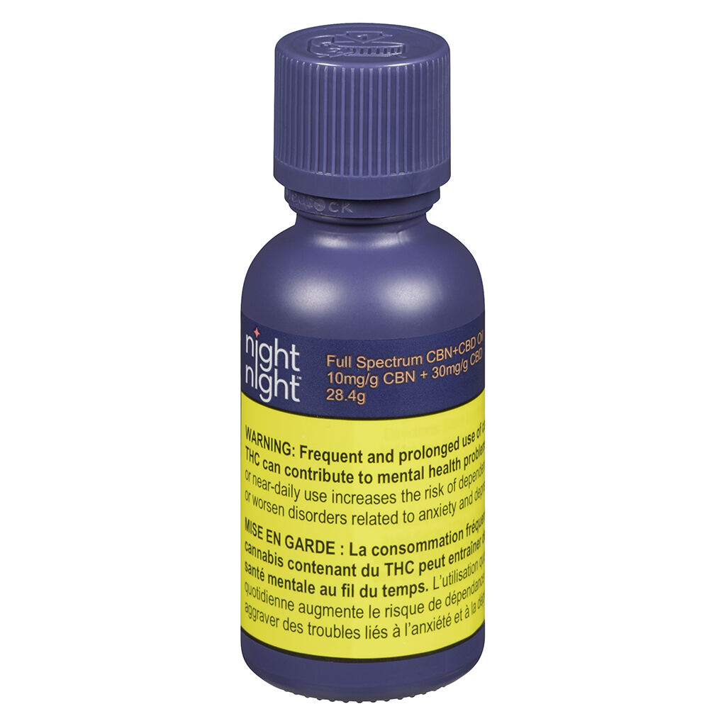 NightNight Full Spectrum CBN+CBD Oil contains 10mg/g of CBN, 30mg/g of CBD, and no THC, creating a new way to experience the synergistic effects of CBN and CBD in a familiar format. NightNight’s CBN+CBD formulation is combined with pharmaceutical-grade MCT and terpenes, resulting in a full spectrum functional oil ideal for nighttime use. All NightNight's CBN products are enhanced with CBD and other natural ingredients to create consumer-focused products of unparalleled quality and utility. NightNight products are developed and manufactured by Purileaf in Niagara Falls, Ontario. Each lot is tested by accredited laboratory to ensure quality and consistency.